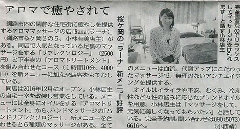 釧路新聞に掲載されました 2018年2月16日